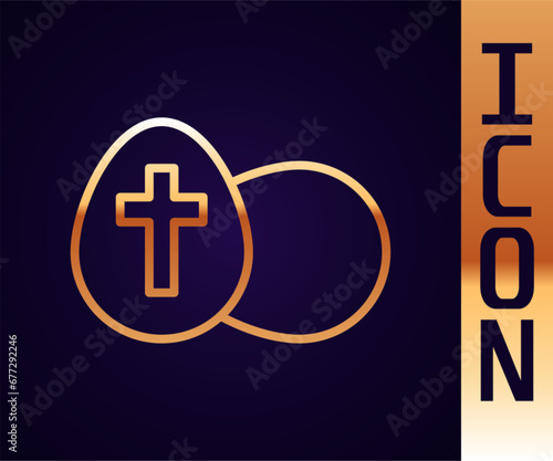 Obraz premium Gold line Easter egg icon isolated on black background. Happy Easter. Vector