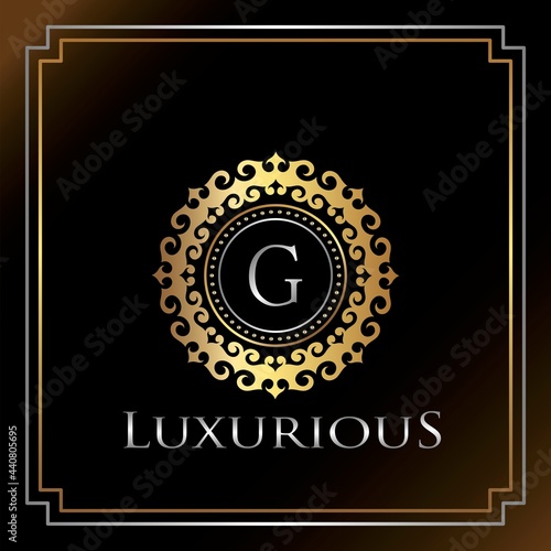 Fototapeta premium Gold Luxury Ornate Badge G Logo Letter. Elegance Ornate Decorative Luxury Initial Logo Template.