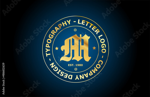 Naklejka premium gold M vintage alphabet letter logo icon design. Creative template for label...