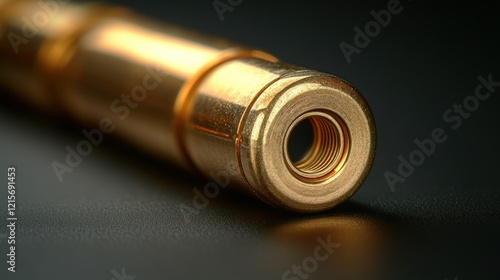 Fototapeta premium Gold metal connector, close-up, dark background, industrial detail, product shot