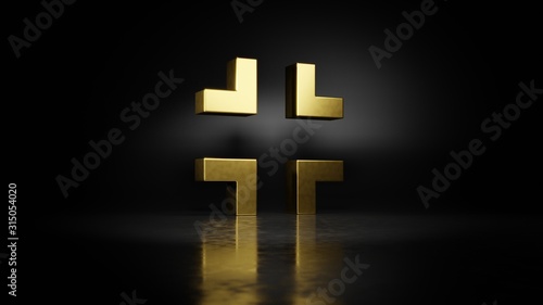 Fototapeta premium gold metal symbol of exit 3D rendering with blurry reflection on floor with dark background
