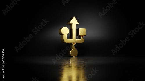 Obraz premium gold metal symbol of technology 3D rendering with blurry reflection on floor...