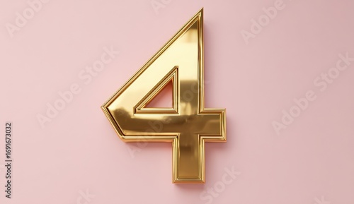 © Muzammil, Fototapeta premium Gold number four on a pink background