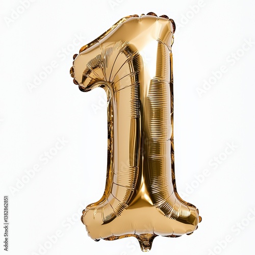 © benjaporn, Fototapeta premium Gold Number One Foil Balloon on White Background