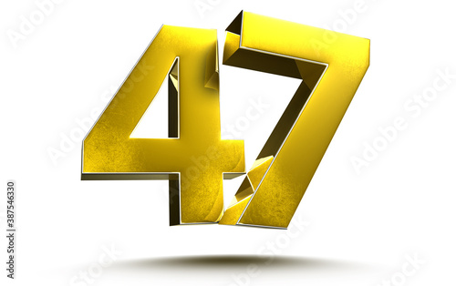 Fototapeta premium Gold numbers 47 isolated on white background illustration 3D rendering.(with Clipping Path).