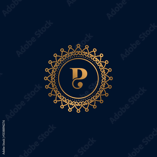 Fototapeta premium Gold Ornate Letter P Logo on Dark Blue