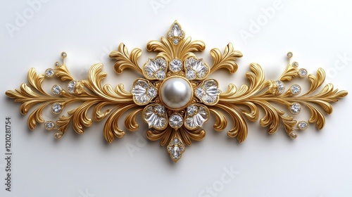 © RONNY, Obraz premium Gold ornate pearl jewel design, white background