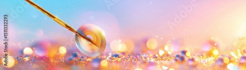 Fototapeta premium Gold Paintbrush Touching Circular Surface with Colorful Background
