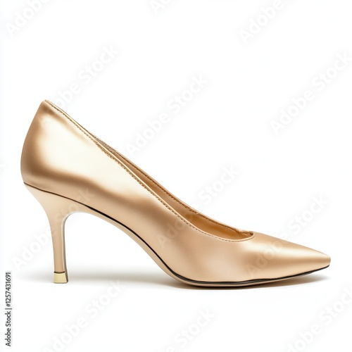Obraz premium Gold pumps studio shot, elegant footwear, white background, fashion