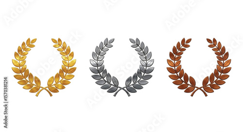 Obraz premium Gold Silver Bronze Laurel Wreaths Representing First Second Third Place...
