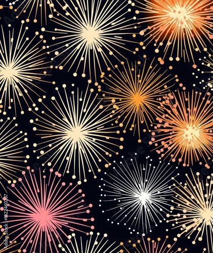 Naklejka premium Gold silver pink champagne glasses fireworks pattern abstract nature line.