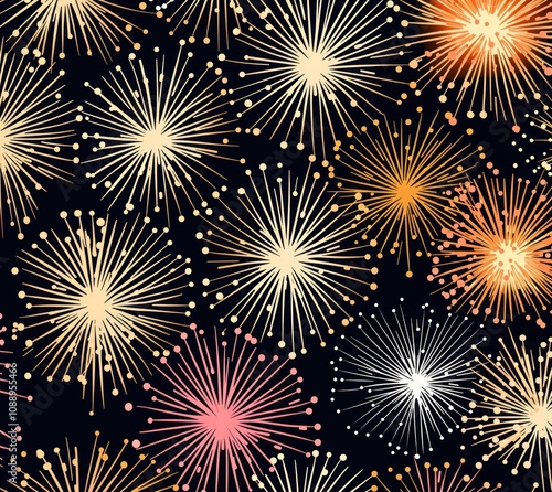 Naklejka premium Gold silver pink champagne glasses fireworks pattern abstract nature night.