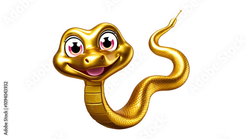 © Fairy Art, Fototapeta premium Gold snake, 3D render, cute cartoon, isolated on white background.