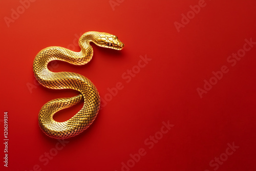© Digital Sensei, Fototapeta premium Gold snake on a red background for Chinese New Year concept