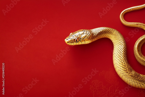 © Digital Sensei, Fototapeta premium Gold snake on a red background for Chinese New Year concept