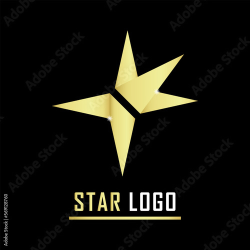 Obraz premium Gold Star Logo, Gold Crown Logo vector in elegant style on black background....