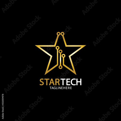 Obraz premium Gold Star Technology logo on black background
