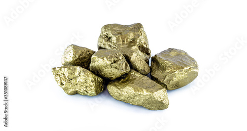 © RHJ, Fototapeta premium gold stones on white isolated background. Nuggets from another, concept of wealth or precious golden stones.