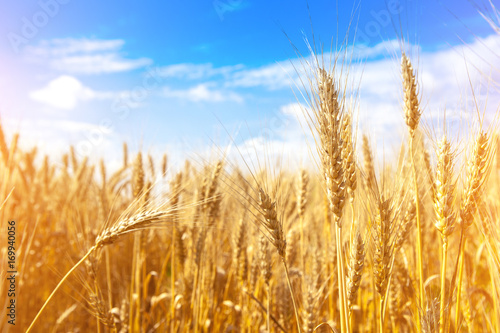 © fotoru, Fototapeta premium Gold wheat field and blue sky