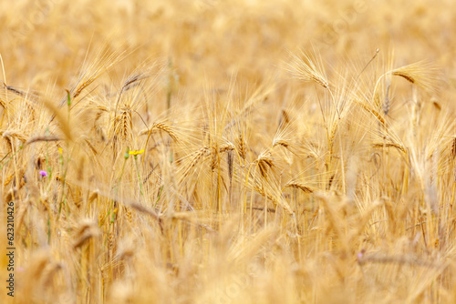 Fototapeta premium Gold wheat field, ripening ears of yellow wheat field