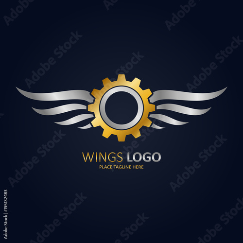 Fototapeta premium Gold winged gear with silver wings icon