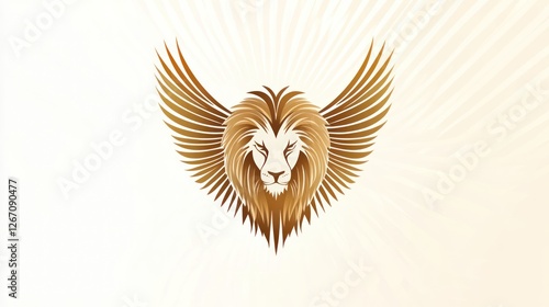 © Mufarokah, Obraz premium Gold winged lion on light burst background, ideal for majestic logo
