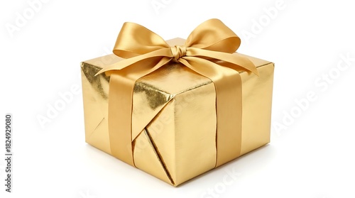 © Emran, Obraz premium Gold Wrapped Gift Box with Satin Ribbon and Bow stock