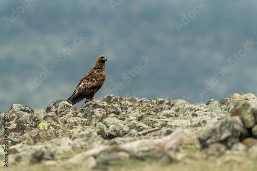 Fototapeta premium Goldean Eagle (Aquila chrysaetos) at mountain meadow in Eastern Rhodopes,...