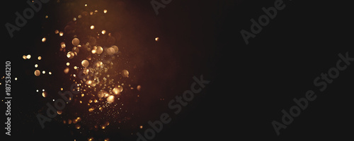 Fototapeta premium Golden abstract bokeh on black background. Holiday concept
