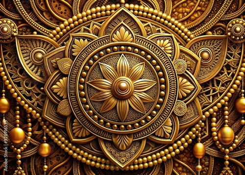© kittipon, Naklejka premium Golden Adorned Tribal - Ethnic, Ancient, Ritualistic, Gold, Braided