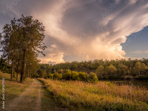 Obraz premium Golden Afternoon with Path and Big Cloudscape