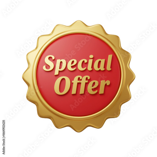 Fototapeta premium Golden and red special offer seal isolated on transparent background
