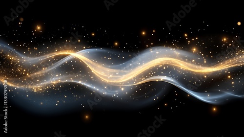 Obraz premium Golden And Silver Waves Of Light Sparkle In The Dark