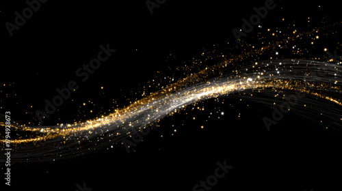 © Sunny, Obraz premium Golden and White Particle Trail Over Deep Black Background in Modern Style