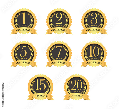 Naklejka premium Golden anniversary medal icon set from 1st to 20th.