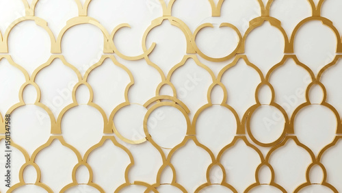 Fototapeta premium Golden Arabesque Pattern: Elegant gold arabesque pattern on a white...