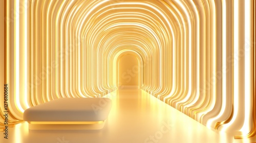 © innova, Naklejka premium Golden Archway Tunnel with Platform 3d Render