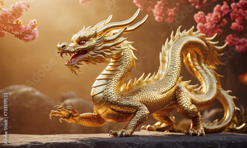 © DemiourgosAI, Obraz premium golden Asian Dragon, Chinese New Year Concept Generative AI