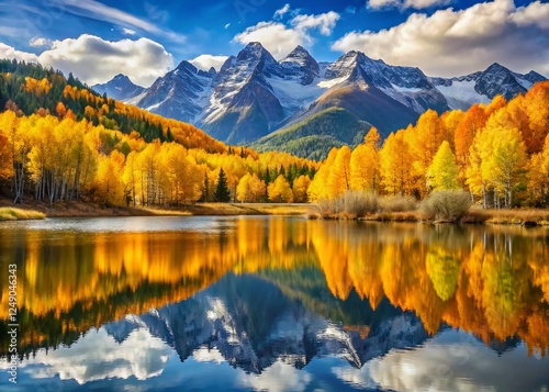 © prapatsorn, Fototapeta premium Golden Aspen Reflections: Stunning Autumn Mountain Lake Landscape