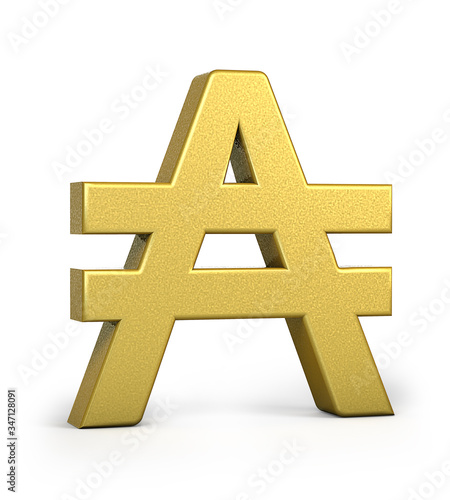 Obraz premium Golden Austral Argentina Currency Icon Isolated, 3D gold Austral Argentina symbol with white background, 3D rendering, 3D illustration