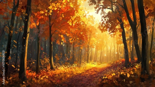 Obraz premium Golden Autumn Forest Path
