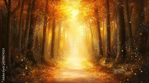 © neni, Fototapeta premium Golden autumn forest path