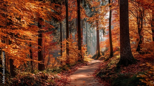 © Tanish, Fototapeta premium Golden Autumn Forest Path