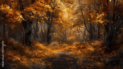Obraz premium Golden Autumn Forest Path.