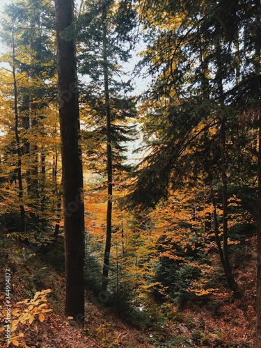 © Iryna, Fototapeta premium Golden autumn in mountain forest.