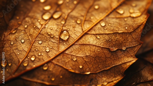 Fototapeta premium Golden Autumn Leaf Water Droplets Close Up