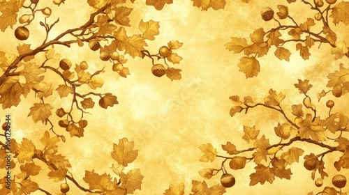 Fototapeta premium Golden Autumn Leaves and Branches Decorative Background
