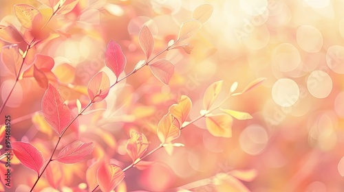 © Bay, Fototapeta premium Golden autumn leaves gently sway under the warm sunlight, creating a dreamy atmosphere in a serene setting