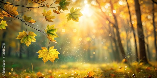 © Urenus Photos, Obraz premium Golden Autumn Leaves Glowing in the Sunlit Forest