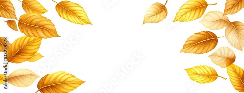 Fototapeta premium Golden autumn leaves gracefully falling on a blank white background inviting...
